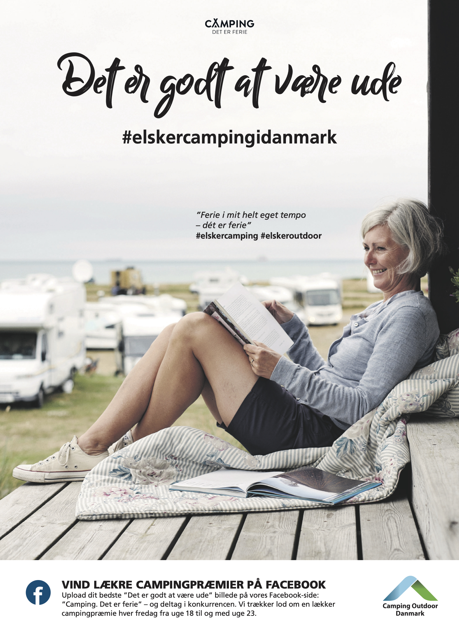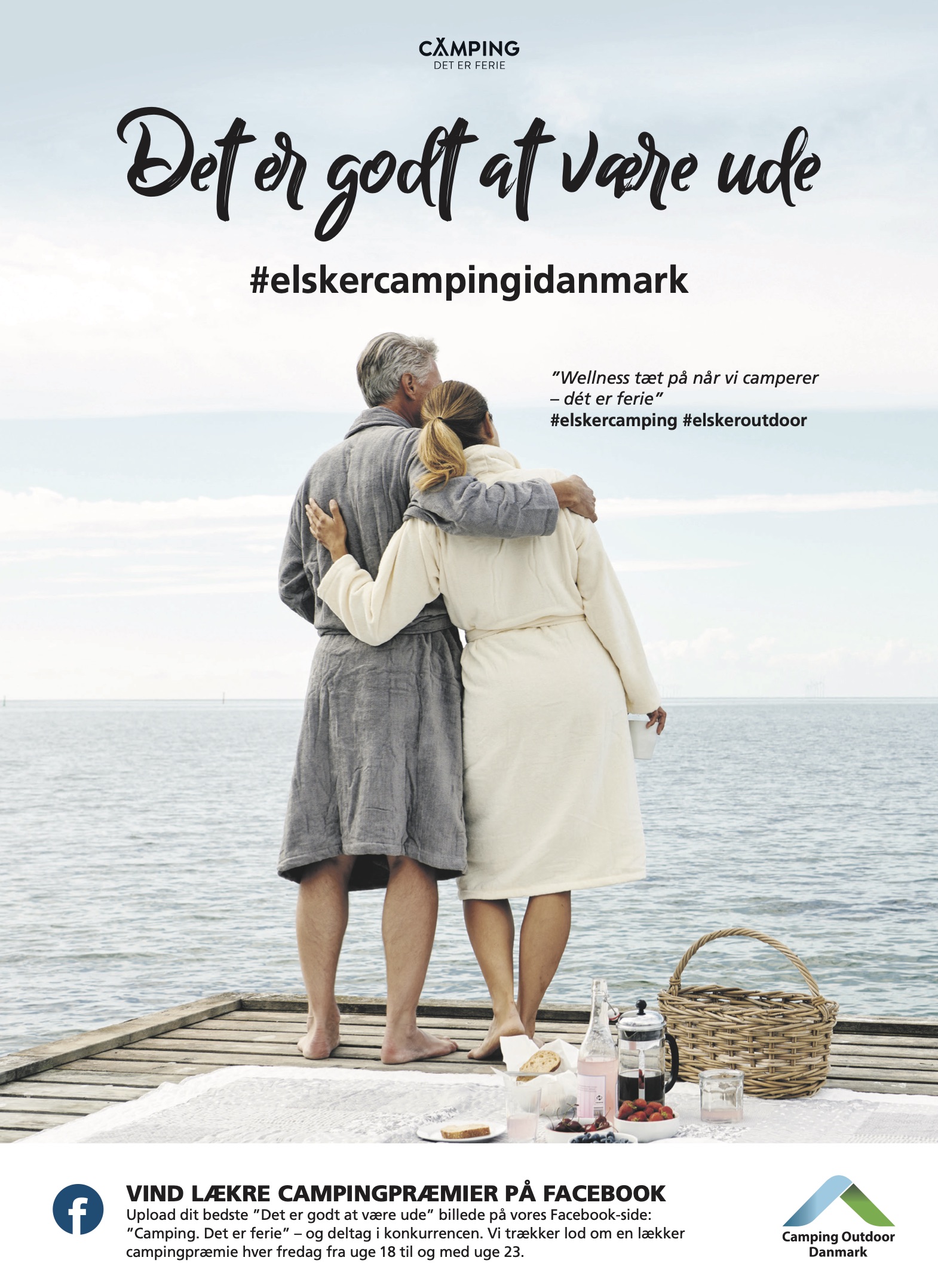 ”Camping. Det er ferie” - er overskriften. “Det er godt at være ude” er budskabet, som skal vise, at camping er en ferieform, som er tryg, relevant og meget attraktiv i disse coronatider. Vi har i en lynindsats brugt de forhåndenværende billeder og budskaber, som brandingudvalget har udarbejdet.