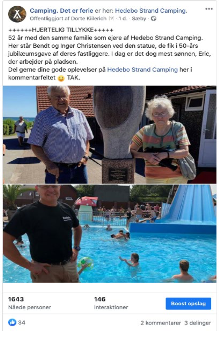 Vi begynder også at modtage gode historier med tilhørende billeder fra campinglivet på pladserne. Disse bringer vi også som fortællinger fra det virkelige campingliv sommeren 2020. Se eksemplet fra Hedebo Strand Camping.
